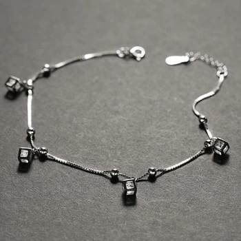 Cube design Anklets in 925 Sterling silver with high luster cz stone 21.5+3cm length for women girls hot sale