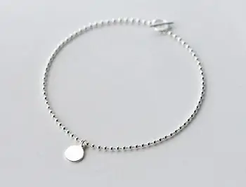 1pc 21cm 100% Real. 925 Sterling Silver Fine Jewelry Polished Coin Round Beads Chain Anklet Bracelet GTLS584