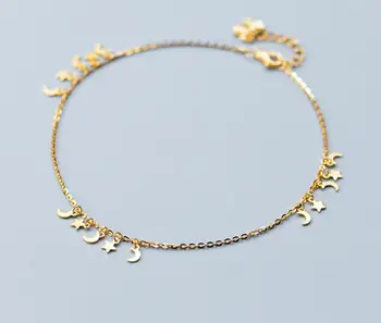 100% Real. 925 Sterling Silver Fine Jewelry Tinny Star &Moon Crescent Anklet Bracelet Golden Color GTLS577