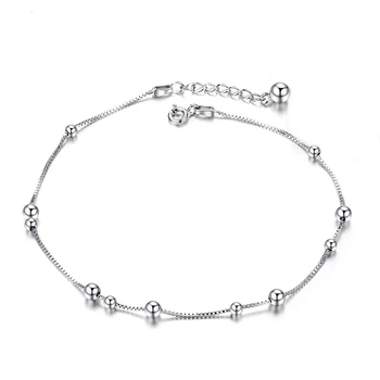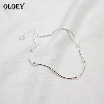 OLOEY Real 925 Sterling Silver Anklet For Women Simple Snake Chain Beaded Ankle Bracelet Fine Jewelry Gifts Drop Shipping YMA001