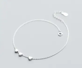 SO THIN Small 100% Real. 925 Sterling Silver Fine Jewelry 3-hearts Anklet Bracelet GTLS638