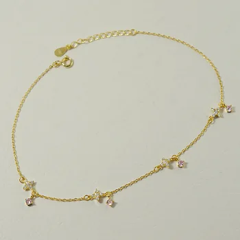 925 sterling silver mosaic zircon star Anklets simple fashion design wild Anklets for women for ladies anklets foot jewelry gift
