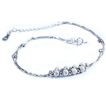 Sinya 925 Sterling Silver lucky beads Anklets for Women Girls lover gift 22cm+5cm korean creative features matte beads design