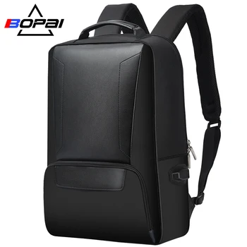BOPAI 2018 Men Laptop Backpack 15.6 Inch Daily Work Backpack Men Black Leather Schoolbag High School back pack mochila escolar