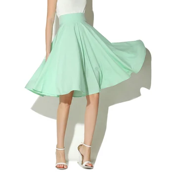2018 New Summer Skirts Casual Women Solid Color High Waist Ladies Umbrella Skirt Big Swing Middle Beach Female Chiffon Bottoms
