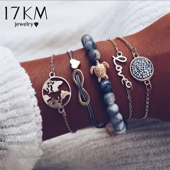 17KM Vintage Turtle Heart Map Charm Bracelets Set For Women 2 New Design Stone Beads Infinite Bracelet Boho Jewelry Wholesale