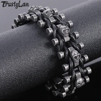 Stainless Steel & Leather Skull Man Bracelet Male Jewelry Dropshipping