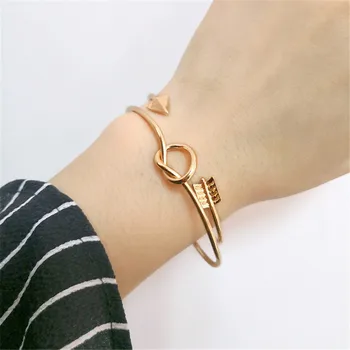 Hot Sale Trendy Alloy Arrow Knotted Opening Bracelet for Women Charm Gold Jewelry Gifts Wedding Jewelry Wholesale