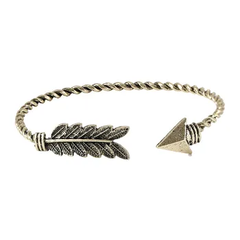 Fashion Alloy Triangular Arrow Bracelet Feather Leaf Openings Adjustable Retro Charming Bracelet for Men and Women Jewelry Gift