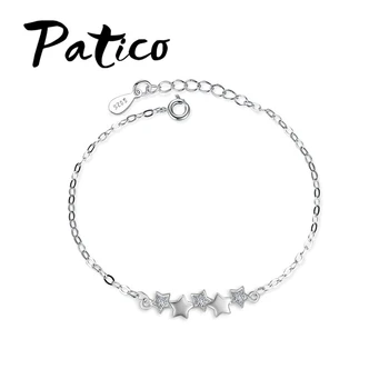 PATICO High Quality Girls Fashion 925 Sterling Silver Shinning Star Crystal Pendant Bracelet For Valentines’ Day/Birthday