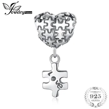 JewelryPalace 925 Sterling Silver Jigsaw Heart Puzzle Dangle Love Charm Fashion For Women 2018 New Hot Sale Beautiful Gifts