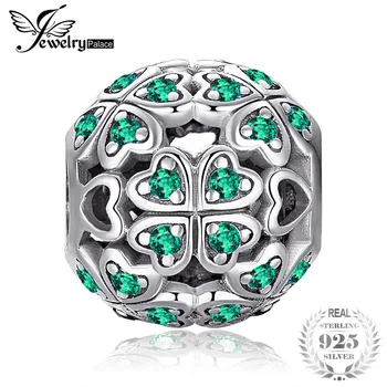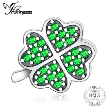 JewelryPalace Luck Irish Clover 0.6ct Green Cubic Zirconia 925 Sterling Silver Charm Beads For Women 2018 New Hot Sale