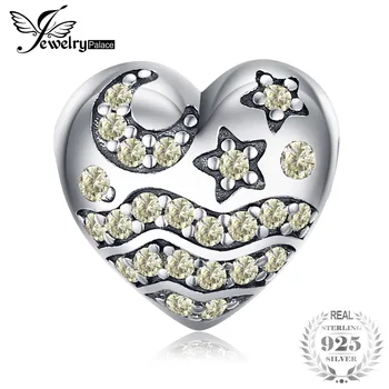 JewelryPalace 925 Sterling Silver Champagne Cubic Zirconia Star Moon Wave Charm Beads Fit Bracelets For Women As Beautiful Gifts