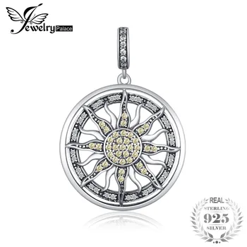 JewelryPalace 925 Sterling Silver Yellow And White Cubic Zirconia Celestial Sun Charm Beads Fit Bracelets New Hot Sale For Women