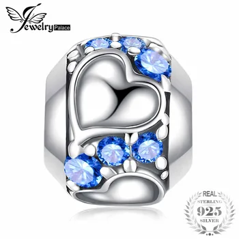 JewelryPalace Faithful Heart 0.4ct Blue Cubic Zirconia 925 Sterling Silver Charm Beads 2018 New Hot Sale Beautiful Gifts