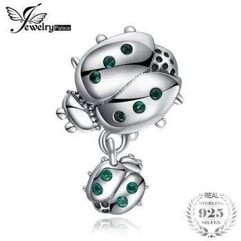 JewelryPalace 925 Sterling Silver Green Cubic Zirconia Mother And Child Ladybird Charm Beads Fit Bracelets For Your Best Friend