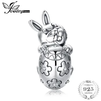 JewelryPalace 925 Sterling Silver Easter Day Egg Bunny Rabbit Charm Beads Fit Bracelets New Hot Sale For Women As Beautiful Gift