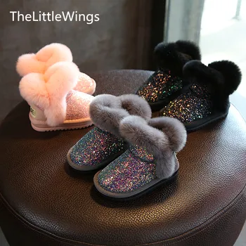 Winter 2018 children’s shoes Chaussure Rabbit’s hair Sequins girls Non-slip school Snow boots super soft and comfortabl aged 1-9