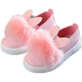 Kids Shoes For Children 2018 New rabbit ear pompom shoes for Baby Girls Shoes Cartoon Anti-slip Rabbit Ear leather Single Shoes
