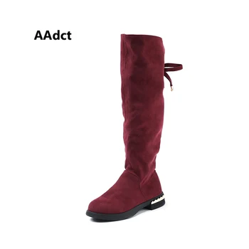 AAdct Autumn single high boots for girls 2018 new children’s princess long boots 2018 Leather kids boots for girls bow Brand