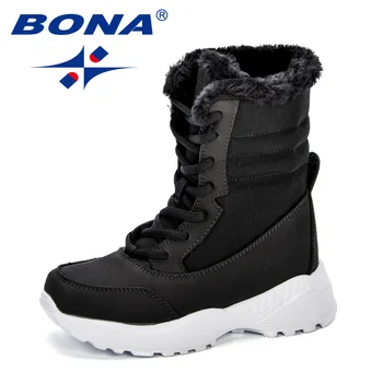 BONA Girls Snow Boots Children Shoes Winter Boots For Boys Sport Child Shoes Kids Sneakers 2018 Brand Fashion Mid-Calf Boots