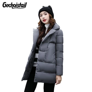 Geckoistail Woman Winter Jacket Coat 2018 Fashion Cotton Padded Jacket Long Hood Slim Parkas Plus Size Thicken Female Outerwear