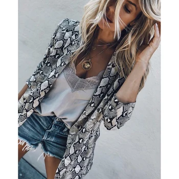 Women Vintage Snake Print Coats Turn down Collar Long Sleeve Coat Female Outerwear 2018 Fashion Casaco Feminine Jackets