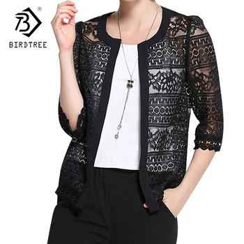 Plus Size 5XL New Spring Summer 3/4 Sleeve Jacket Women Thin Lace Hollow Out Coat Sexy White Black Casual Jackets Tops C7D206A