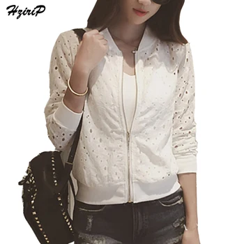 Hzirip Lace Hollow Out Jackets 2018 Spring Summer New Casual Slime Women Thin Jacket White Black Lady Shorts Outwear Plus Size