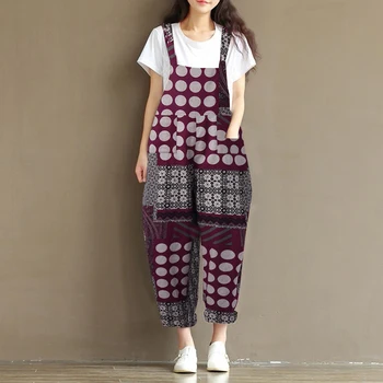 ZANZEA 2018 Summer Women Casual Boho Printed Baggy Party Long Jumpsuit Vintage Cotton Linen Loose Strap Romoers Wide Leg Pants