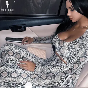 Missord 2018 Autumn and Winter Women Sexy Cloak Three Pcs Set Snake Print Female Elegant Party Jumpsuit FT9704