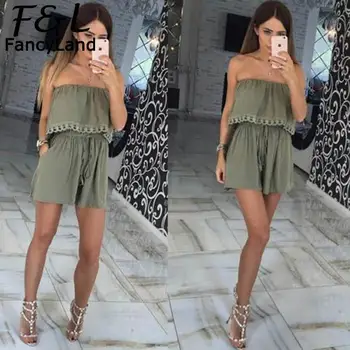 Shoulder Fashion Women Casual Slash Neck Sleeveless Off the New Solid Lace Sexy Jumpsuits