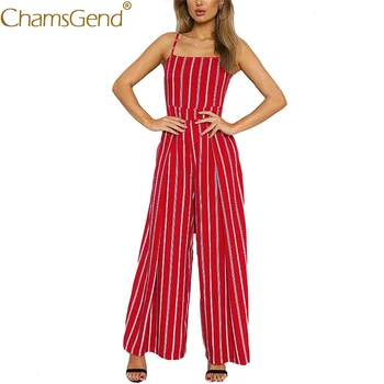 Free Shipping Women Fashion Vintage Sleeveless Strappy Striped Jumpsuit Wide Leg Pants Trousers Red Rompers 80509 Drop Shipping