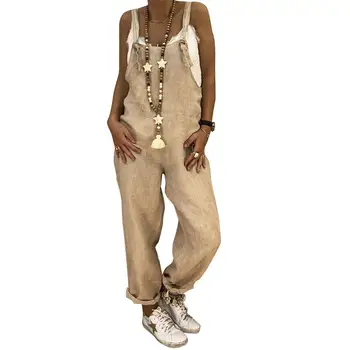 2018 Woman Autumn And Winter Casual Loose Straight Large Size Linen Solid Cotton One-Piece Bib Dungarees Rompers Jumpsuits Pants