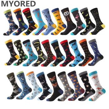 MYORED new Mens socks Women animal alien chili Moustache sloths Novelty Sock combed cotton funny Socks Men’s big size crew socks