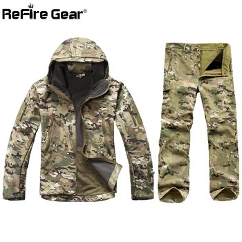 Winter Autumn Waterproof Shark Skin Soft Shell Jacket Set Men Tactical Jacket Camo Military Army Clothes Suit
