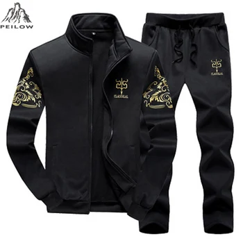 PEILOW plus size M~8XL 9XL Men Tracksuit Sporting Suit Autumn Winter Men sweatshirt Set 2 Piece Mens Sportswear Hoodies+pants