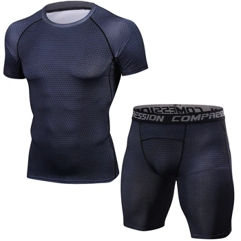 MMA Muscle Men Tracksuit Compression Set T Shirt Men’s Fitness Tights Short Sleeeve Suits Sportswear Gyms Crossfit Clothing