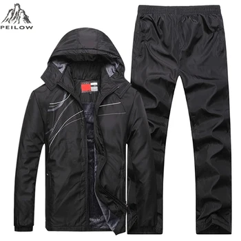 PEILOW plus size L~7XL 8XL winter jacket men outwear cotton Sweatshirt Tracksuit Men`s sportswear Jogger male set jacket+pant