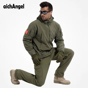 Tactical Soft Shell Camouflage Jacket Set Men Army Waterproof Warm Camo Clothes Military Fleece Coat Windbreaker Clothing Suit