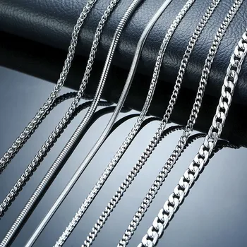Vnox 3-6MM Silver Tone Snake Cocoon Curb Link Flat Box Wheat Chains Stainless Steel Men Necklace Choker Jewelry 24 inch