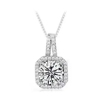 Simple Style Elegant Women Square Shape 925 Sterling Silver Necklaces New Long Cubic Zirconia Pendant Fine Jewelry For Women