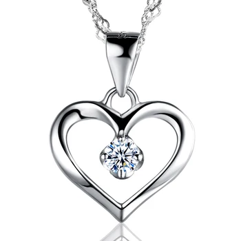 Elegant 925 Sterling Silver Cubic Zirconia CZ Hollow Heart Pendant Necklace Colllar Women Wedding Anniversary Jewelry