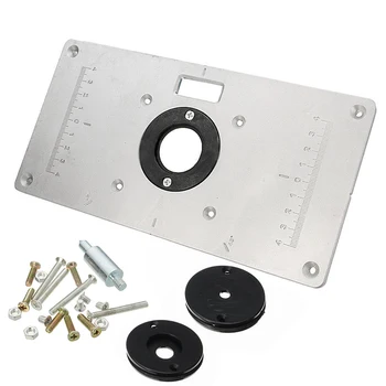 Multifunctional Aluminum Router Table Plate w/ 4 Router Insert Rings Screws for Woodworking Benches M03