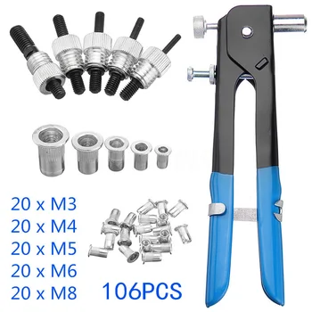 106pcs Set Threaded Nut Rivet Insert Tool Nut Rivet M3-M8 Riveter