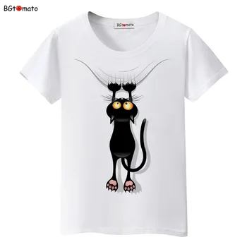 BGtomato Hot sale summer naughty black cat 3D T-shirt women lovely cartoon shirts Good quality original brand tees casual tops