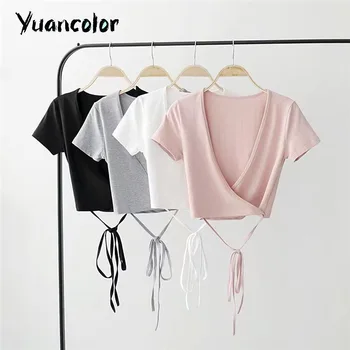Summer Sexy V-neck knitted top tees Women black short sleeve bustier crop top Party white tops tank slim female camisole