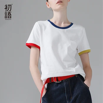 Toyouth Hit Color Edge Tees For Women Basic Cotton T-Shirt Casual O-Neck Tee Shirt Femme S~XXL Summer Tops Short Sleeve T-Shirts