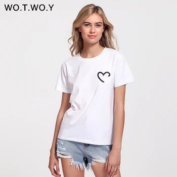 WOTWOY Funny Heart Print Summer T-Shirt Women Black White Female T-shirt Cotton 2018 Novelty Tee Shirt Femme Harajuku Streetwear