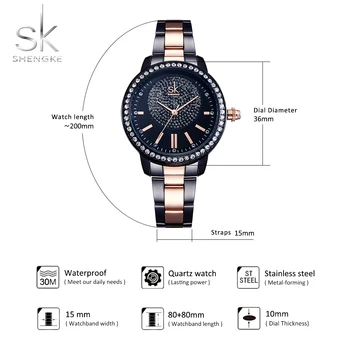 SK Fashion Brand Ladies Quartz Watch Women Casual Dress Wristwatch Rhinestone Bracelet Watch Rose Gold Crystal reloje mujer
